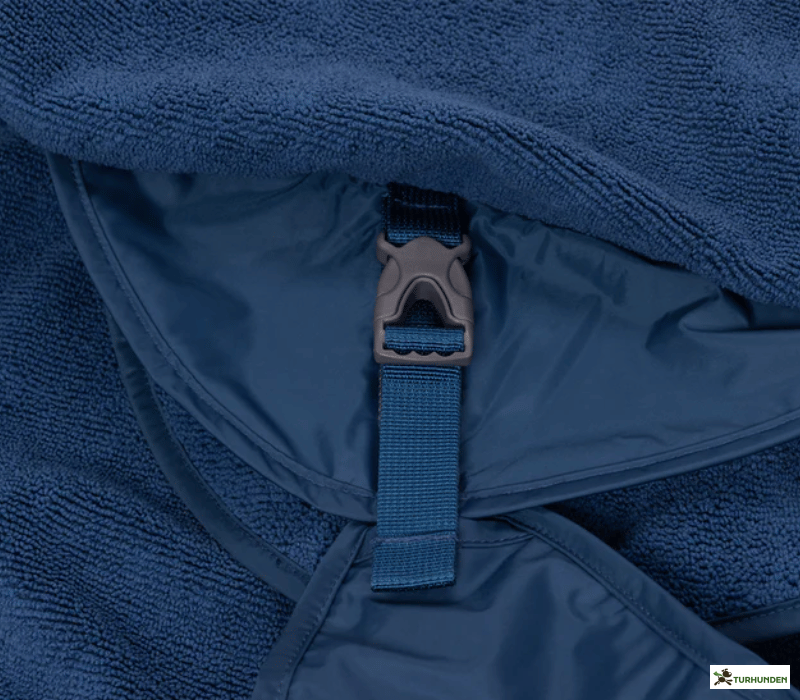 Tørredækkenet er nemt at tage af og på med klikspænder og har en fleksibel halskrave i stræknylon, der giver ekstra dækning. Det er ideelt til brug efter strandture, skovture, svømning eller regnfulde gåture, hvor din hund hurtigt skal tørres, inden I kører hjem.