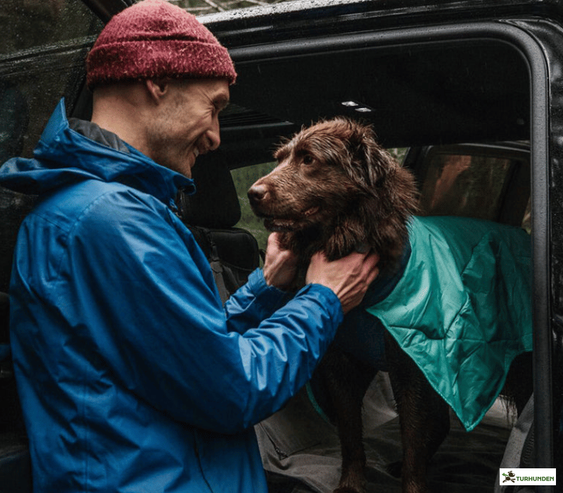 Tag dækkenet på din hund efter leg i vand, mudder eller regn. Justér med spænderne, så det sidder komfortabelt. Lad din hund bære det, indtil pelsen er tør.