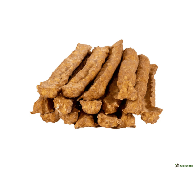 Tyggepindene formpresses og lufttørres uden brug af kemiske tilsætningsstoffer eller blegemidler. Hovedingrediensen er ren fra Norden, og ved behov suppleres med nøje udvalgte EU-råvarer. Den lette, porøse struktur gør tyggepinden lettere at tygge, men stadig tilpas sej til at give en tilfredsstillende tyggeoplevelse – perfekt som belønning eller lille snack i hverdagen.