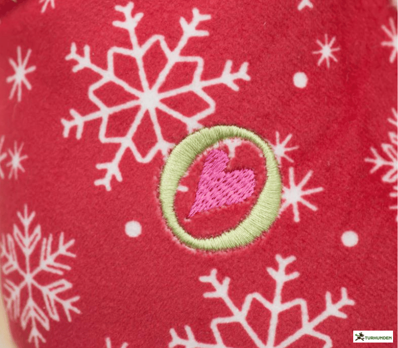 I bedste julestil er det nemlig lavet med HuggleFleece®, snefnug swirls stof og foret med det holdbare 2-lags Tuffut Technology®