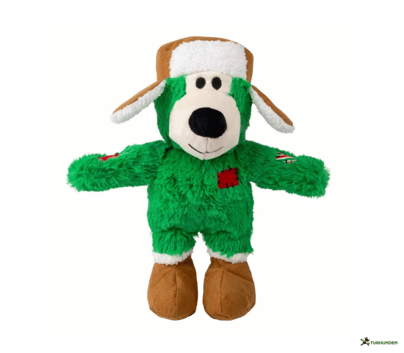 KONG Holiday Wild Knots Bear i størrelsen M/L er en robust og hyggelig julebamse, der kombinerer et blødt ydre med et stærkt indvendigt reb-skelet. Denne større model er oplagt til mellemstore og store hunde, der elsker at tygge, ryste og bære deres legetøj rundt.
