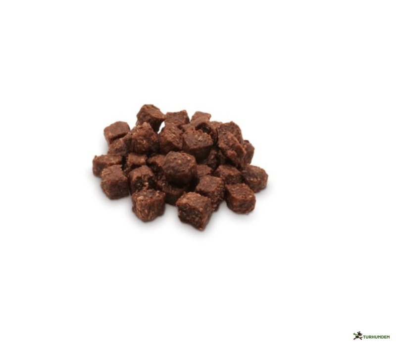 De små tern er ideelle som hurtige belønninger under træning, søgelege eller aktivering i hverdagen. Justér den øvrige fodermængde efter behov.