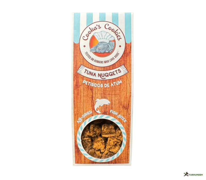 Cooka’s Cookies Tuna Nuggets er små, naturlige godbidder lavet af frisk tun og torsk. De er lette at tygge og ideelle som belønning til træning, på gåturen eller som en lille forkælelse i hverdagen. Den rene fiskesmag gør dem særligt attraktive – også for kræsne hunde.