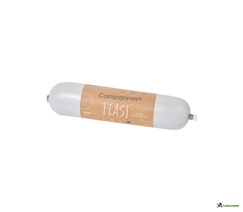 Denne variant af Companion+ Feast er lavet med hele 95 % hjort og har en cremet, men fast konsistens, som gør den nem at skære i mundrette bidder. Det gør den særligt velegnet til træning, sporarbejde eller som belønning på tur – samtidig med at du kan belønne med god samvittighed, da produktet er et fuldfoder med en afbalanceret sammensætning.