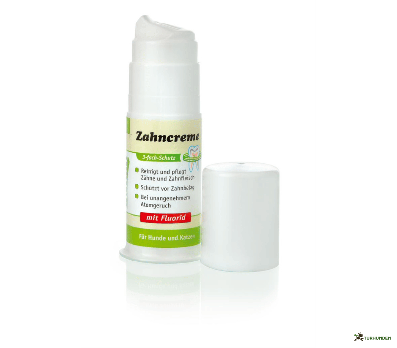 Tandpastaen er mild, uden skummemidler og kan trygt synkes, hvilket gør tandbørstningen nem og behagelig for både hund og ejer.