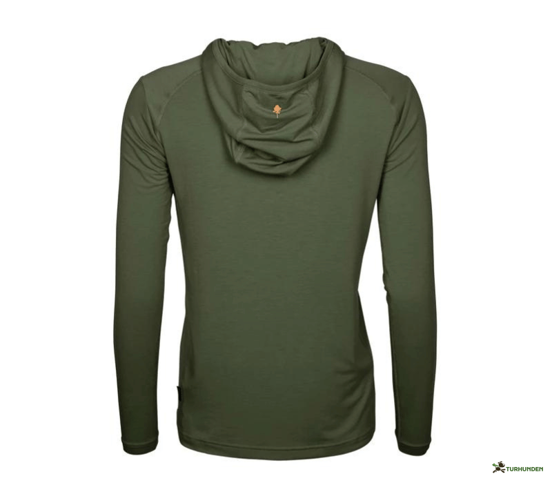Damehættetrøje i stretchmateriale med høj åndbarhed og hurtigttørrende egenskaber. Materialet indeholder drirelease®-garn, som hurtigt fører fugt til stoffets yderside, hvor det fordamper. Materialet regulerer kropstemperaturen og holder dig afkølet og tørrer op til fire gange hurtigere end bomuld. Stoffet er behandlet med en imprægnering, som holder myg og flåter væk fra overfladen.