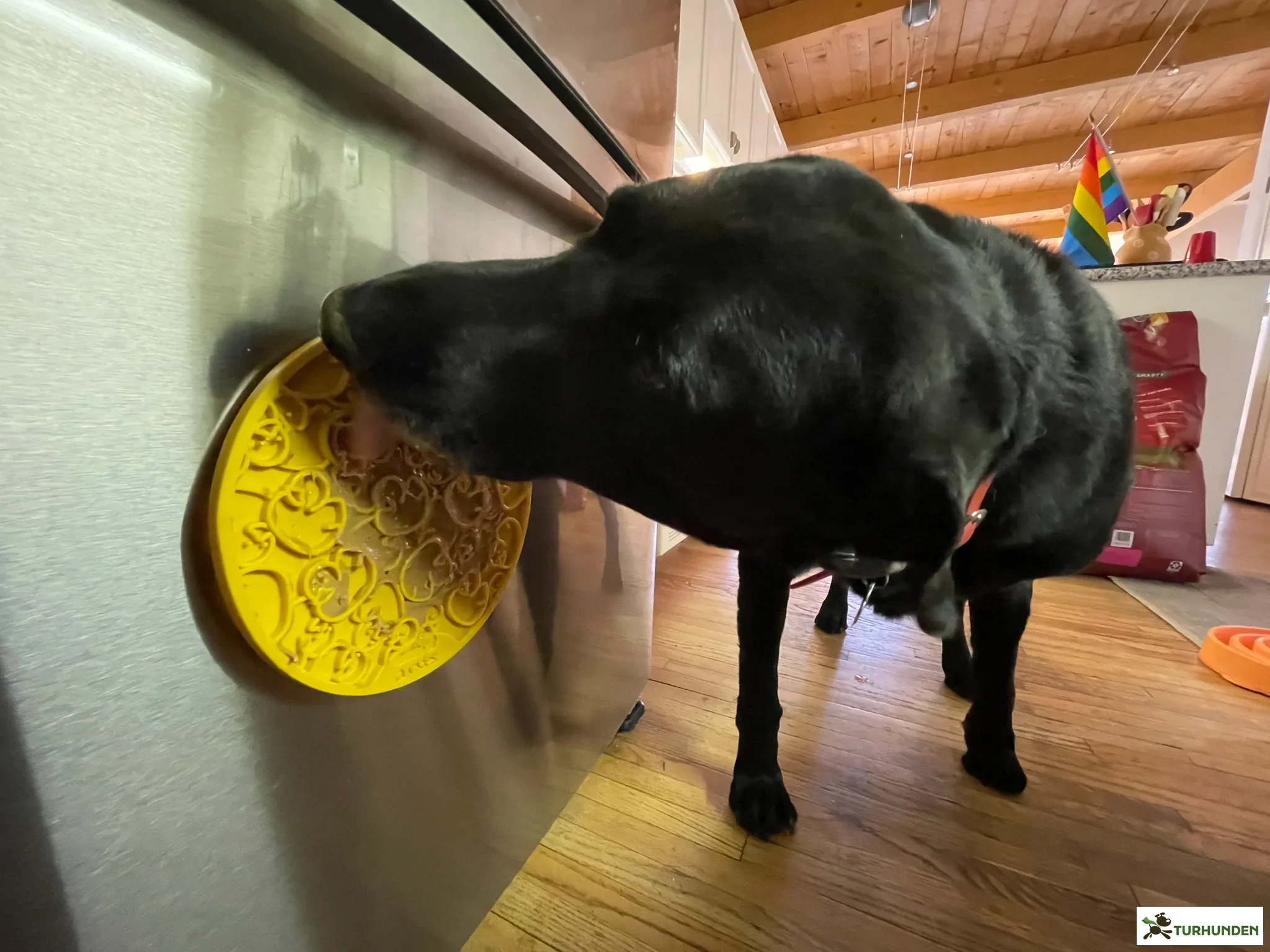 Du kan komme din hunds favorit vådfoder eller lign på, og så evt give den en tur i fryseren. Så er der antistress aktivering til din hund. Og du kan bruge den igen og igen.