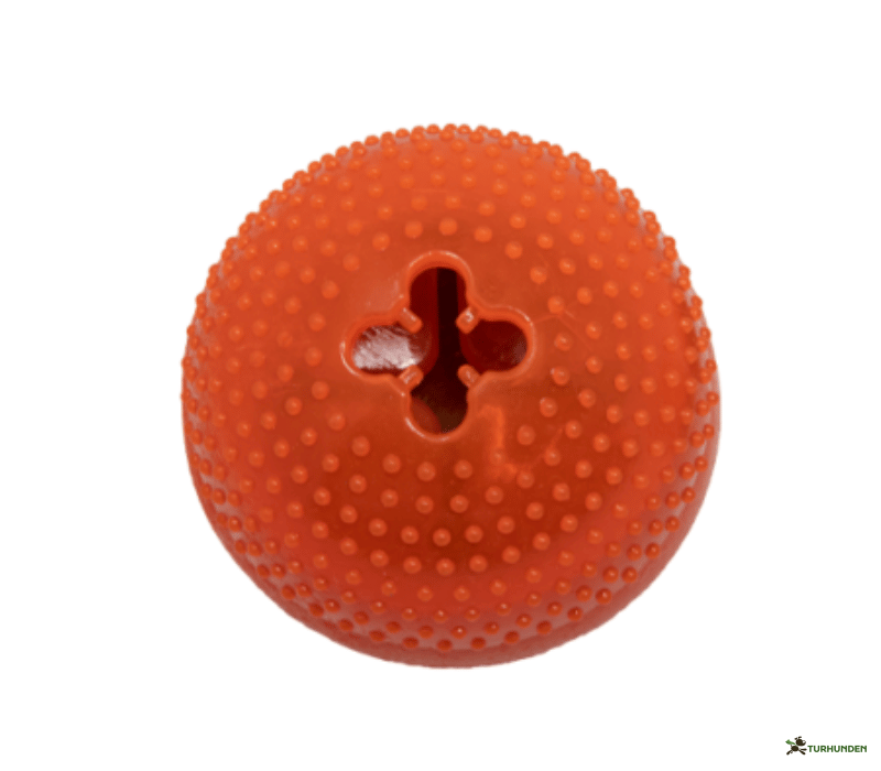 Du kan sætte en Everlasting Treat i åbningen og samtidig fylde kuglen med små snacks eller tørfoder – perfekt til både mental stimulering og længere tyggetid. Bento Ball passer også godt til hunde, der har brug for rolig aktivering, når der kommer gæster, på regnvejrsdage eller som en lille pause mellem dagens aktiviteter.