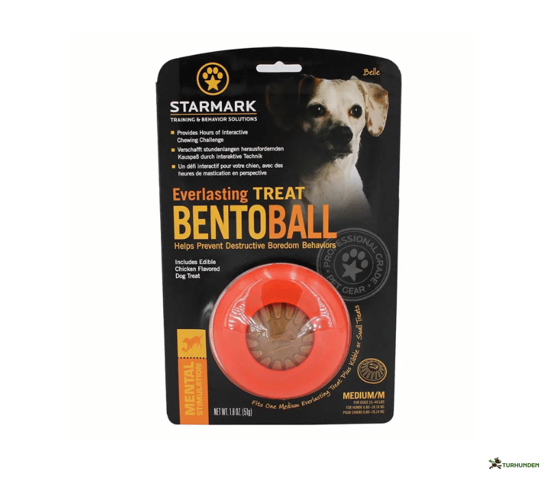 Starmark Bento Ball kombinerer tyggeglæde, mental aktivering og tandpleje i ét robust legetøj. De masserende noprer hjælper med at stimulere tandkød og kan medvirke til at reducere plak, mens hunden arbejder for at få fat i sin Everlasting Treat.